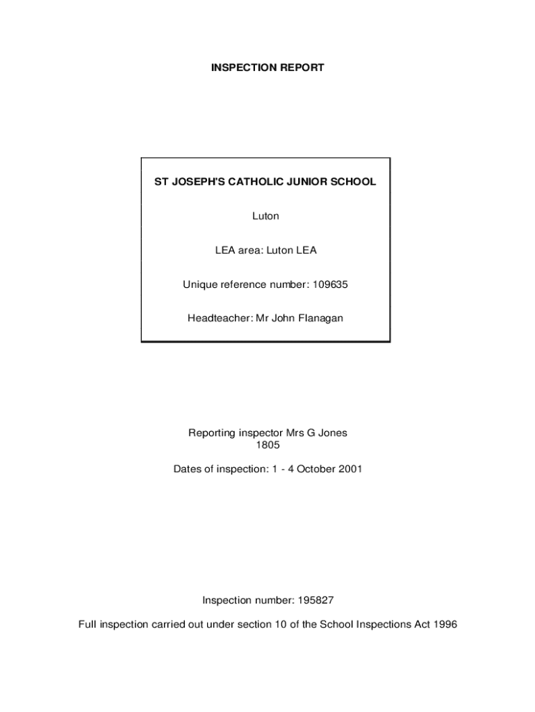 Get the free Inspections Report St Joseph's Catholic Junior School
