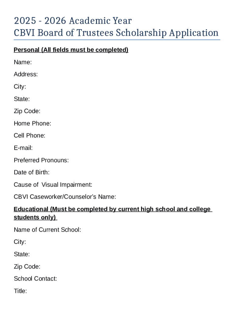 A scholarship form is a vital document that aspiring students submit to request financial assistance for their education. Its primary purpose is to provide the scholarship committee with key information about the applicant, ensuring they understand why the student is deserving of aid. Completing this form accurately and thoughtfully not only demonstrates the applicant's commitment but also mirrors the systematic approach that scholarship organizations take in selecting awardees.