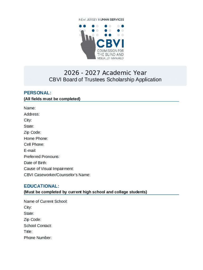 What is CBVI 2026 Scholarship Application. NJ Department of Human Services Form?