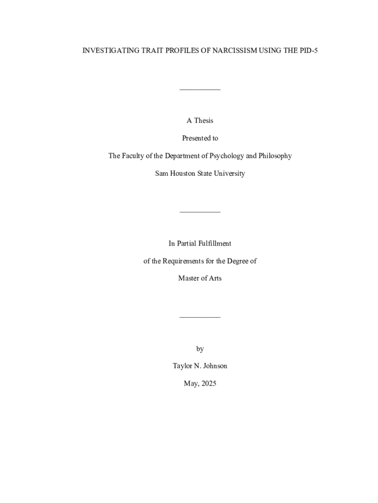 Get the free Investigating Trait Profiles of Narcissism using the PID-5 - shsu-ir tdl