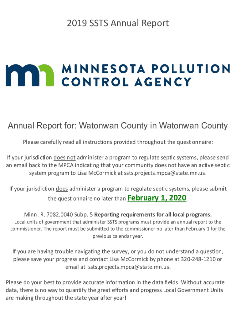Get the free Annual Report for: Watonwan County in Watonwan County