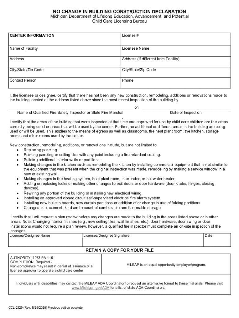 Get the free BCAL-2129, No Change in Building Construction Declaration
