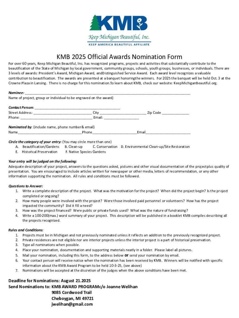 Get the free Home - Keep Michigan Beautiful, Inc. beautifying the state.