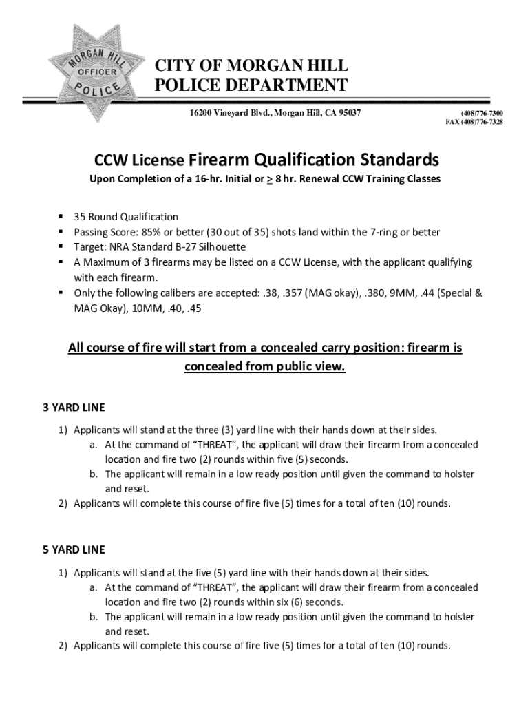 Get the free CCW License Firearm Qualification Standards - Morgan Hill