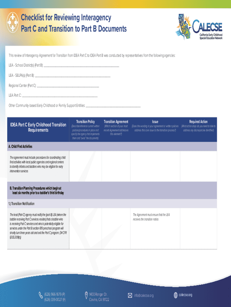 Get the free Interagency Agreement on IDEA Part C to B Transition
