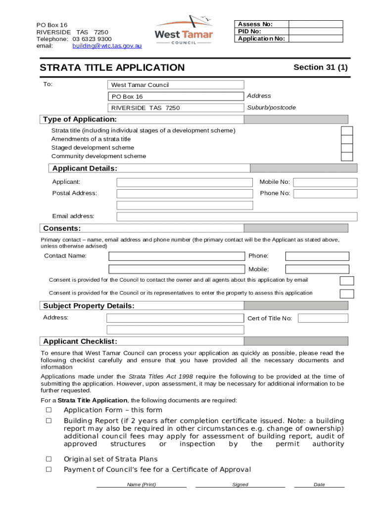 Complete the Strata Title Application Form: Fill out all sections thoroughly to prevent delays.