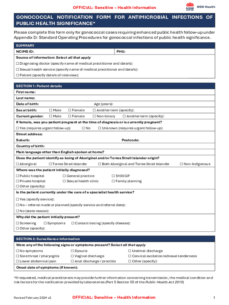 Get the free Health Alert Template for Gonorrhea with Reduced ...