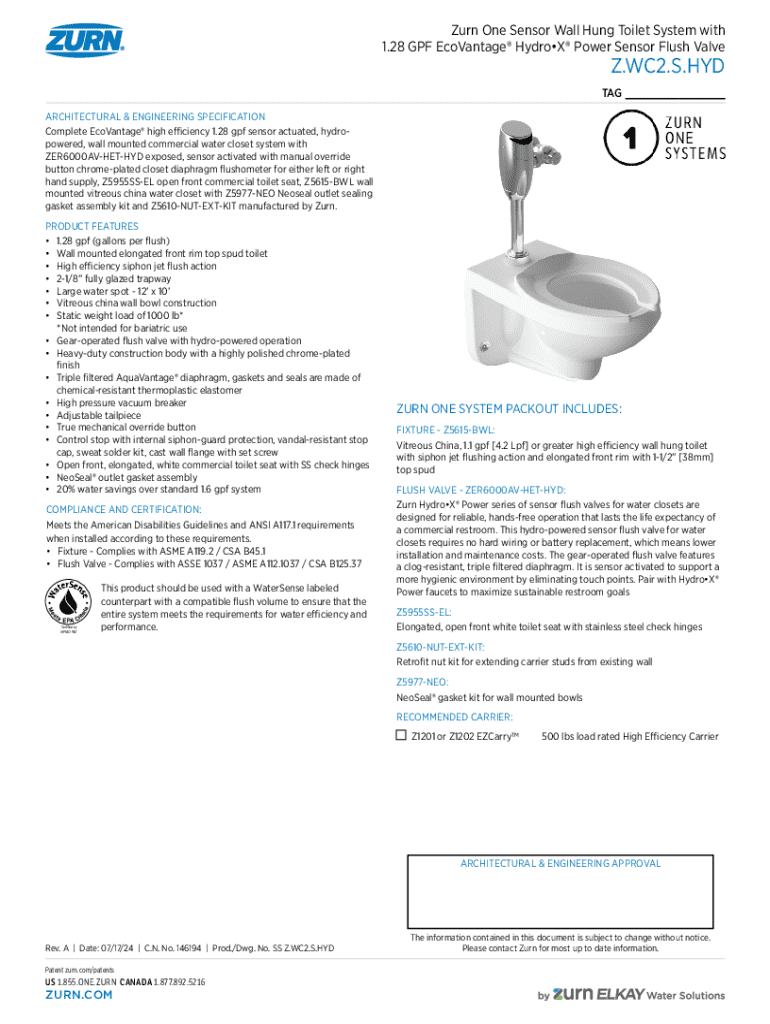Fill out your wall hung zurn one online with pdfFiller!