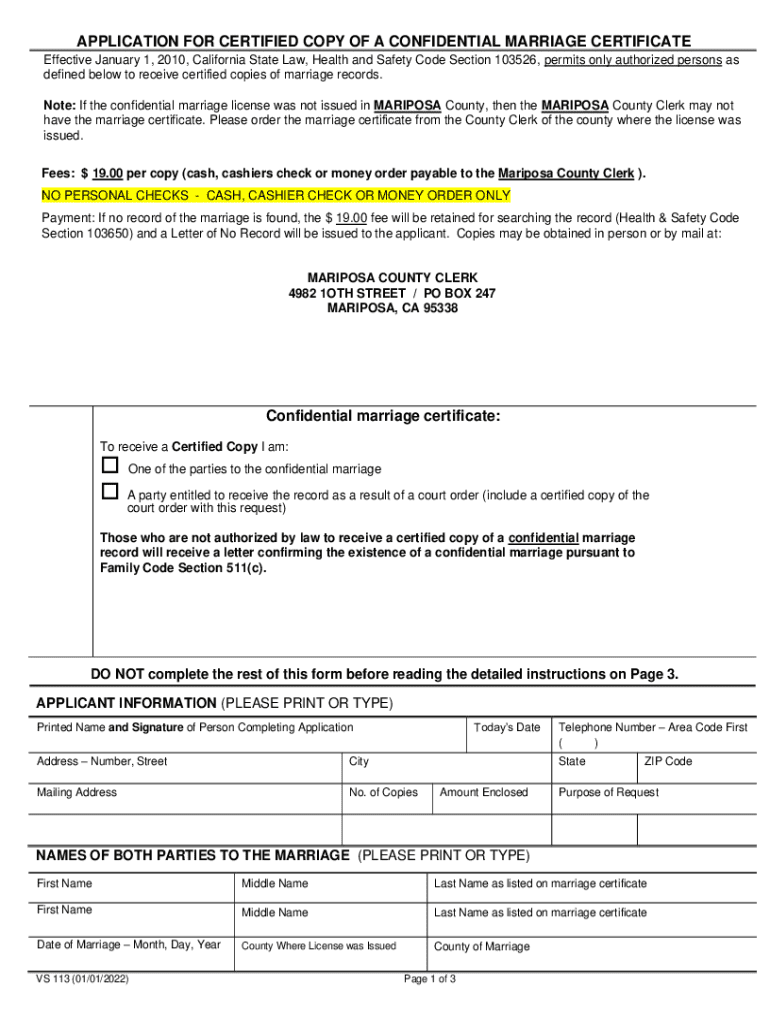 Get the free Confidential marriage certificate: APPLICATION FOR CERTIFIED ...