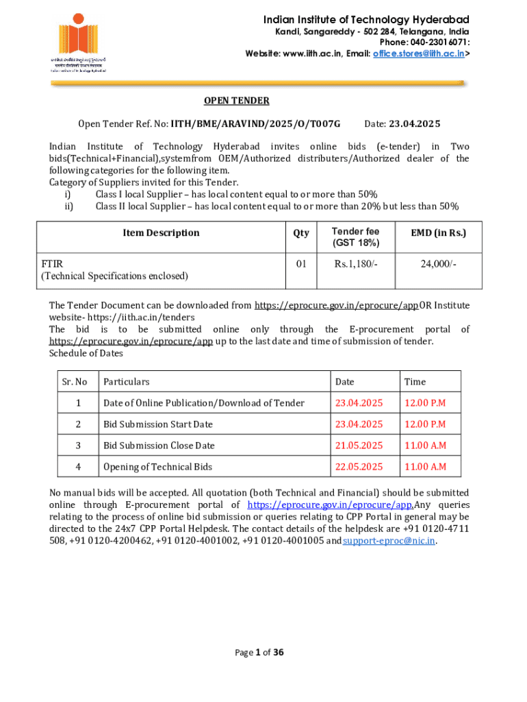 Get the free Indian Institute of Technology Hyderabad invites online bids (e-tender) in Two - iit...