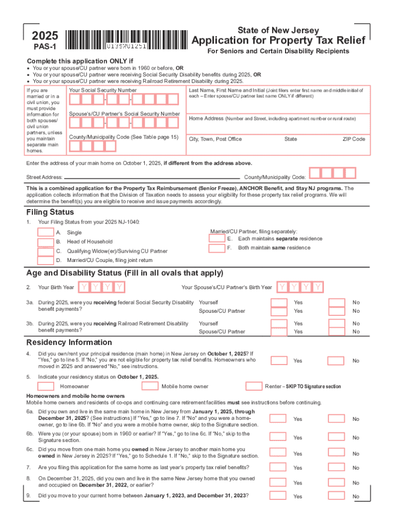 Get the free 2025 Application for Property Tax Relief For Seniors and Social Security Disability ...
