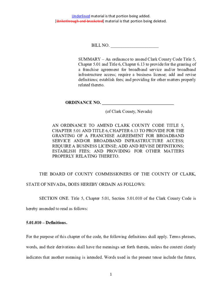 Get the free An ordinance to amend Clark County Code Title 5, Chapter ...