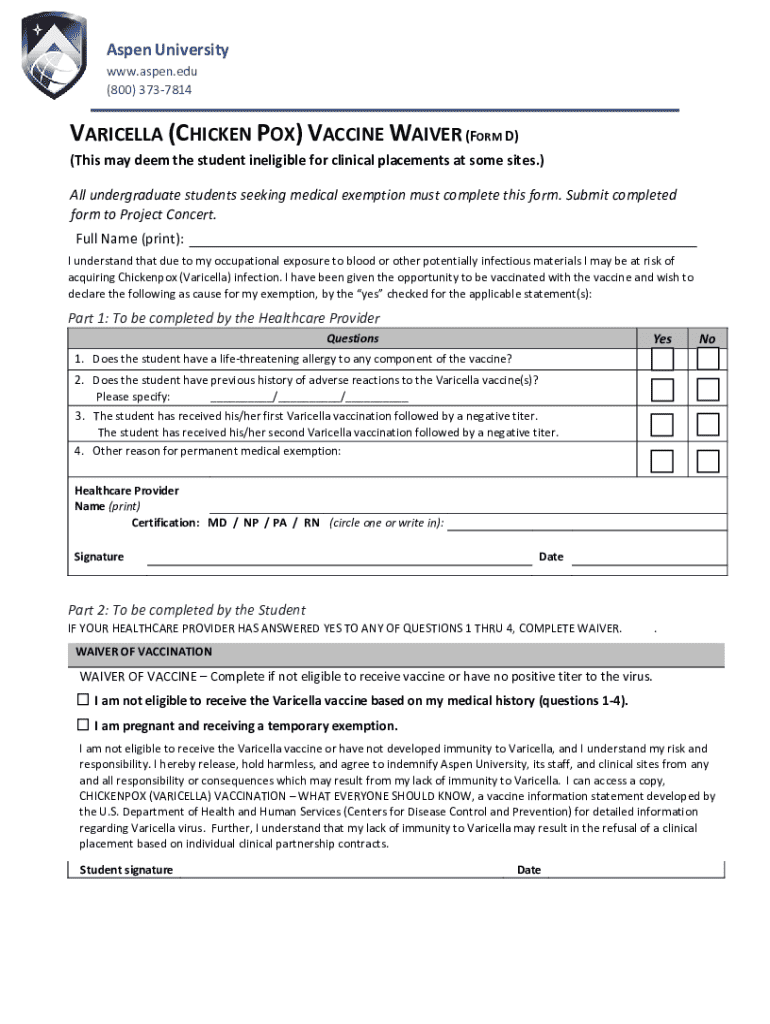 Varicella Chicken Pox Vaccine Waiver Form: A Comprehensive Guide