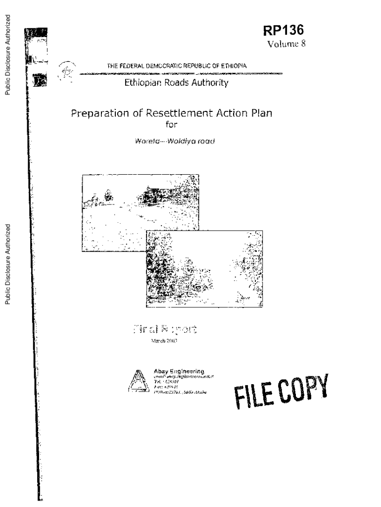 Public Disclosure AuthorizedRP1 36 Volume 8 THE FEDERAL DEMUCRATIC REPUBLIC OF ETHIOPIAEthiopian Roads AuthorityPreparation of Resettlement Action PlanPublic Disclosure AuthorizedPublic Disclosure