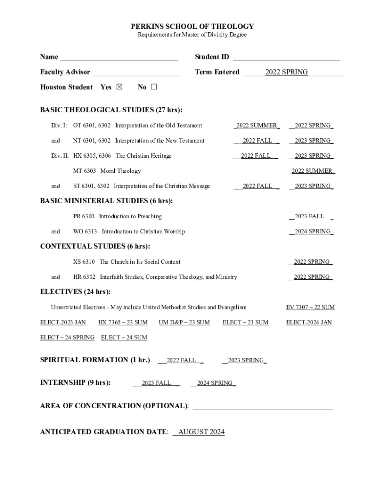 Get the free MDiv 75 hrs fillable degree plan - in person