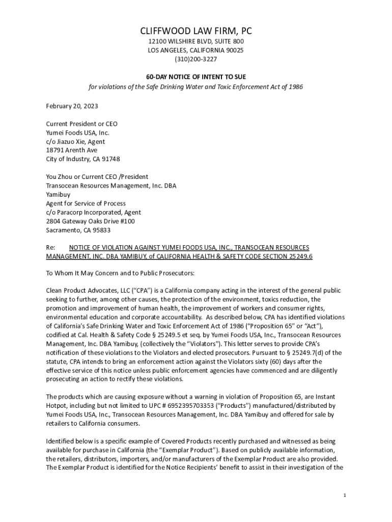 Get the free Instant Hotpot (Yumei Foods USA) 60-Day Notice.docx - oag ca
