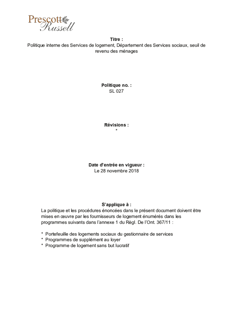 Obtenir le gratuit SL 027 - Politique interne des Services de logement ...