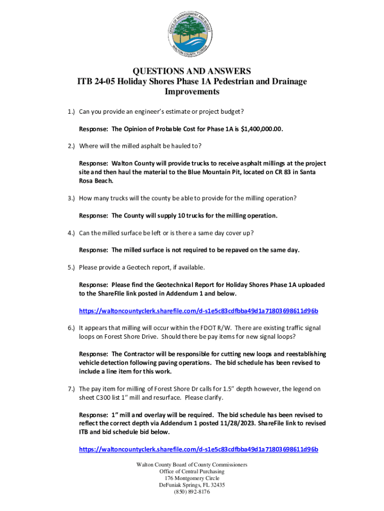 Get the free QUESTIONS AND ANSWERS ITB 24-05 Holiday Shores Phase 1A ...