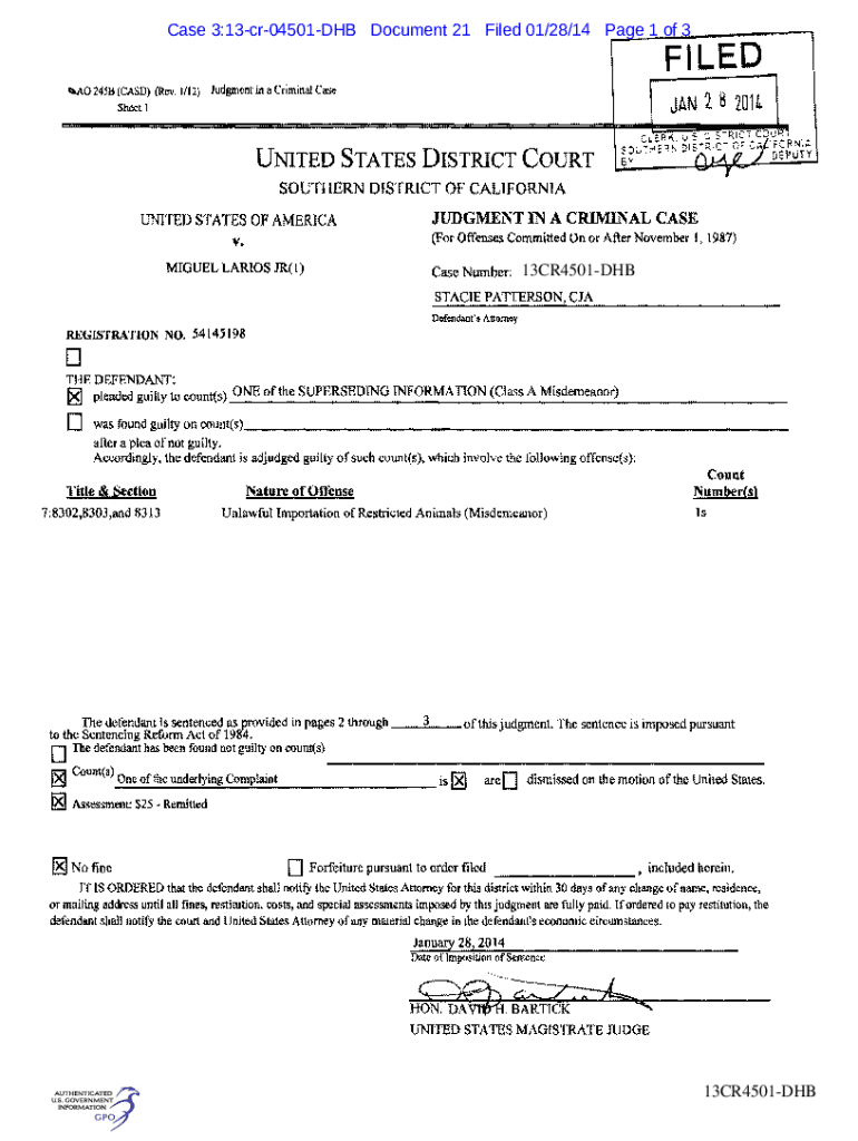 Get the free Case 3:13-cr-04501-DHB Document 21 Filed 01/28/14 Page 1 of 3
