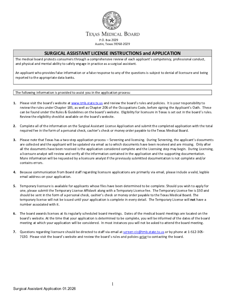 A well-constructed Surgical Assistant Change Form has several key components that facilitate its effective use. First, personal information is necessary; this includes the assistant's name, contact information, and license number. These details validate the individual’s credentials, ensuring that the surgical assist team is adequately qualified, which is imperative in any surgical setting.