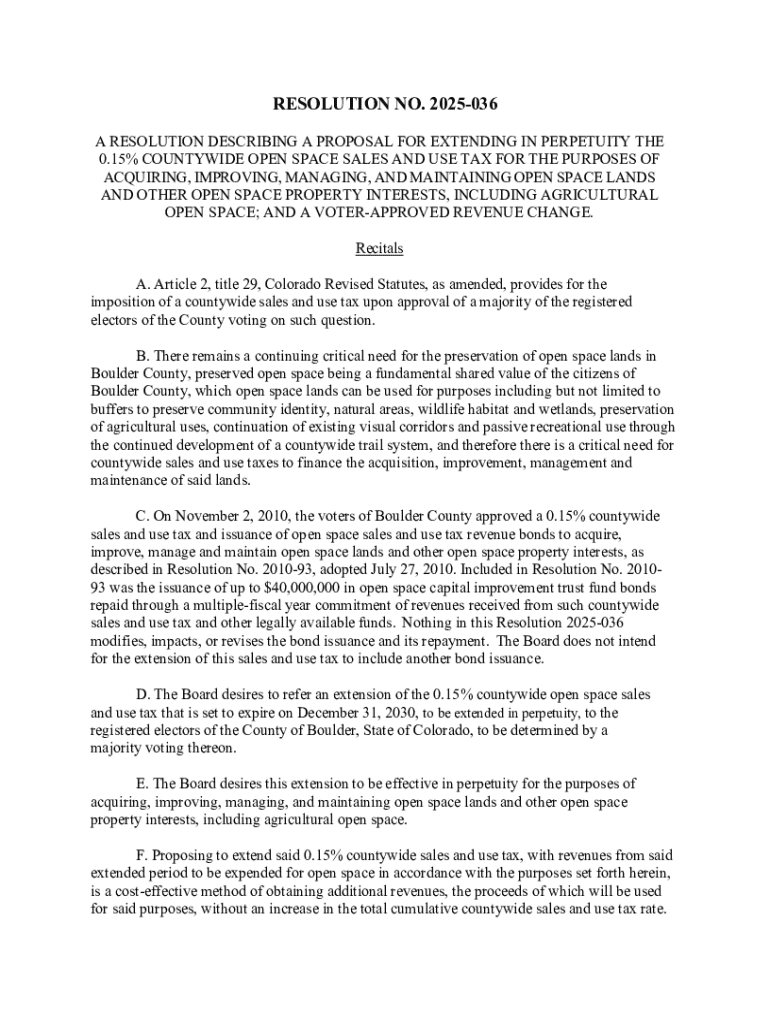 Get the free Open Space Sales and Use Tax Extension and Revenue ...