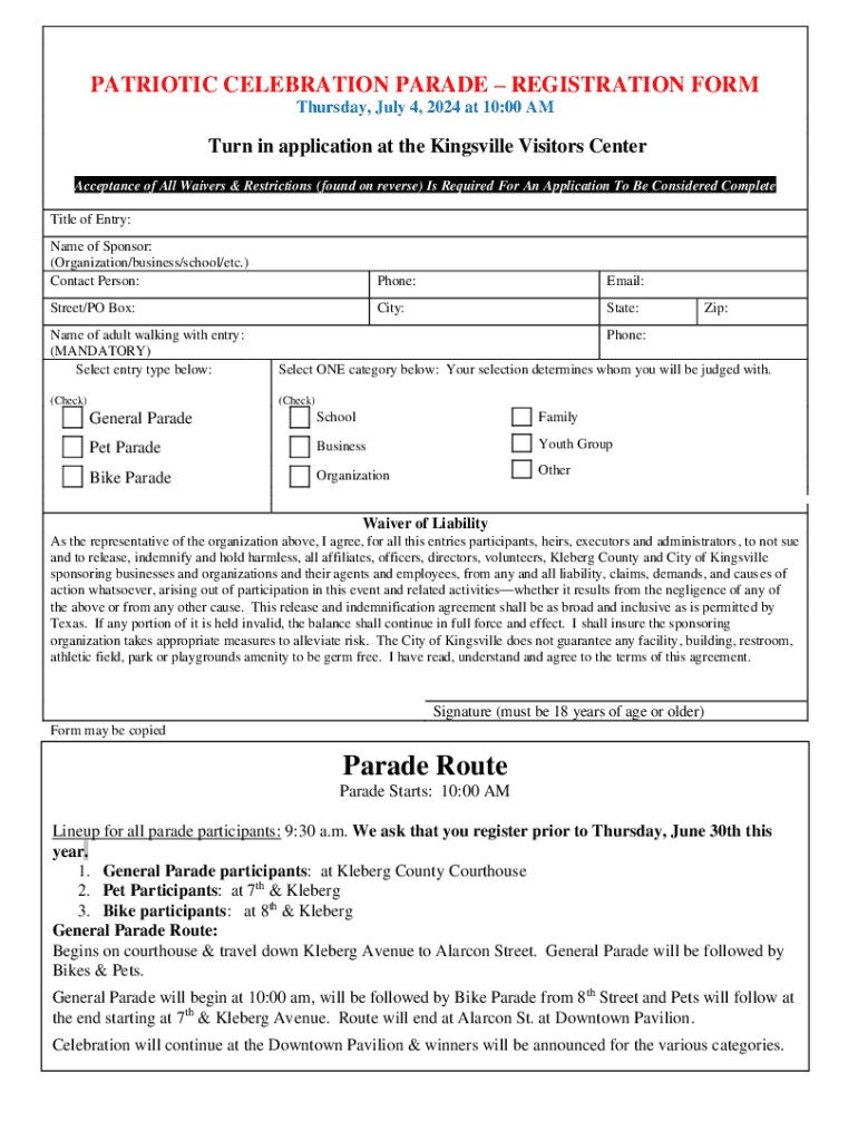 Benefits of sponsorship often include enhanced visibility during the parade, promotional opportunities, and potential community goodwill. Should you be interested in sponsoring, the registration form often includes a section to apply or express interest in sponsorship alongside the standard participant information.