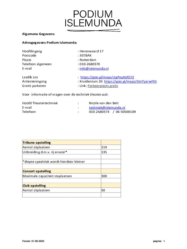 Welke informatie moet worden gerapporteerd op podium islemunda in rotterdam?