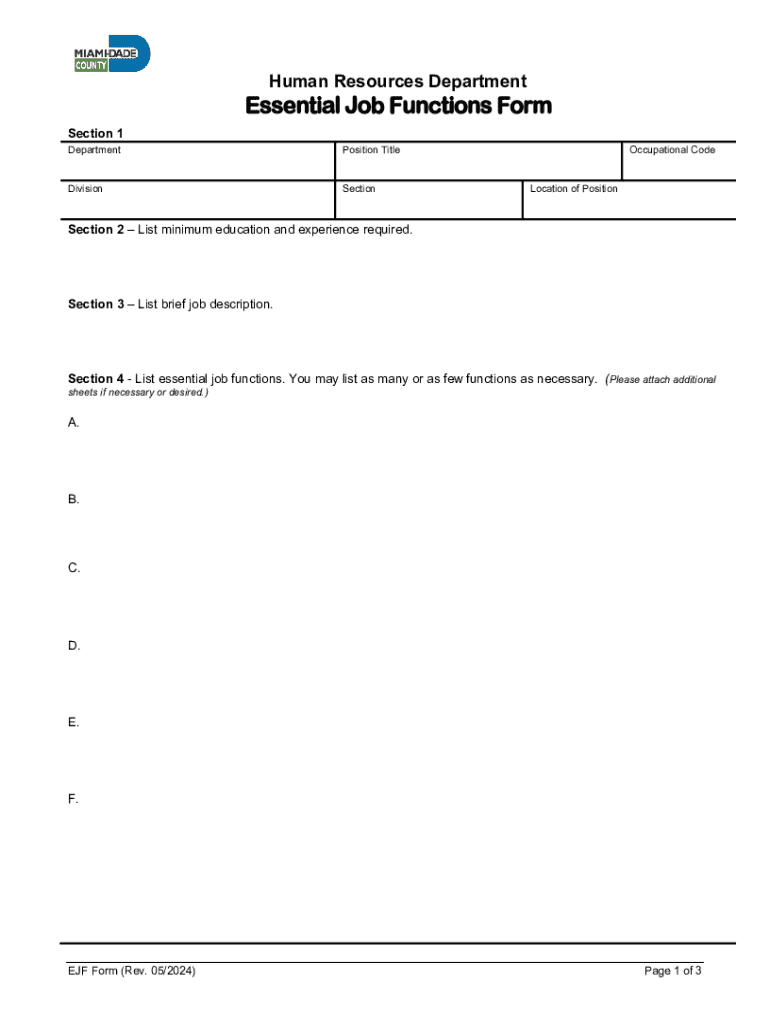 Get the free Essential Job Functions Form - Miami-Dade County