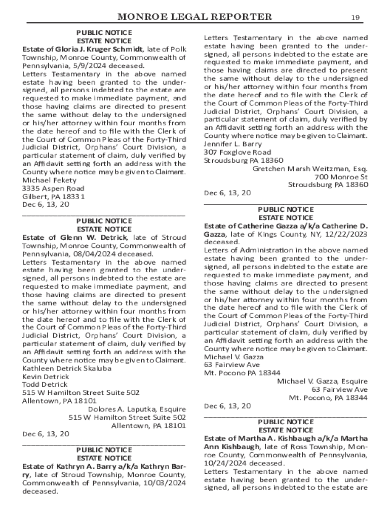 Legal professionals, including attorneys, paralegals, and court clerks, utilize the 20 Monroe Legal Reporter Form in several contexts, such as filing notices, advertisements, and specific legal actions. By providing a structured template for these tasks, it minimizes errors and supports a uniform approach to legal reporting.