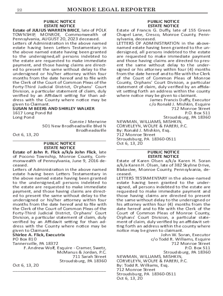 Get the free Estate of JULIUS WARREN BRICE, late of POLK
