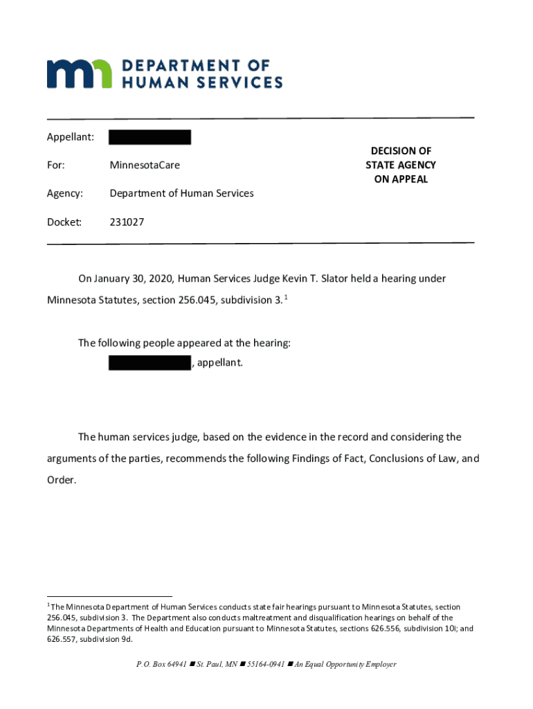 Get the free Appellant: For: Personal Care Assistance Agency - MN.gov