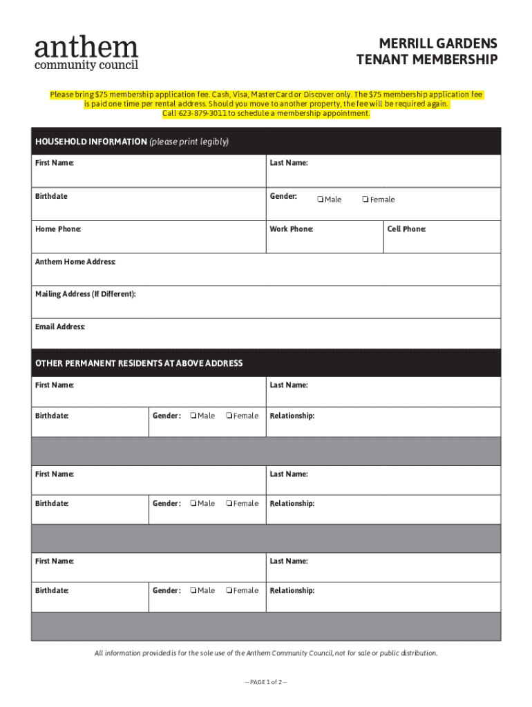 Completing the Merrill Gardens tenant membership form is the first step toward unlocking these benefits. Understanding the key elements of the form will facilitate a smooth application process. The membership form typically requires personal details such as name, contact information, and an identification verification document to ensure identity protection and eligibility.