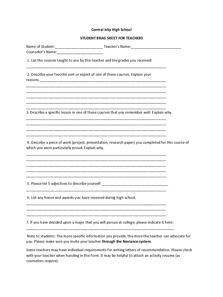 An effective brag form significantly enhances the quality of recommendation letters. When recommenders have access to well-organized and tailored information about the individual, they can write more specific, engaging, and persuasive letters. This specificity is crucial for making a compelling case to colleges or employers, as it paints a vivid picture of the individual’s capabilities and character.