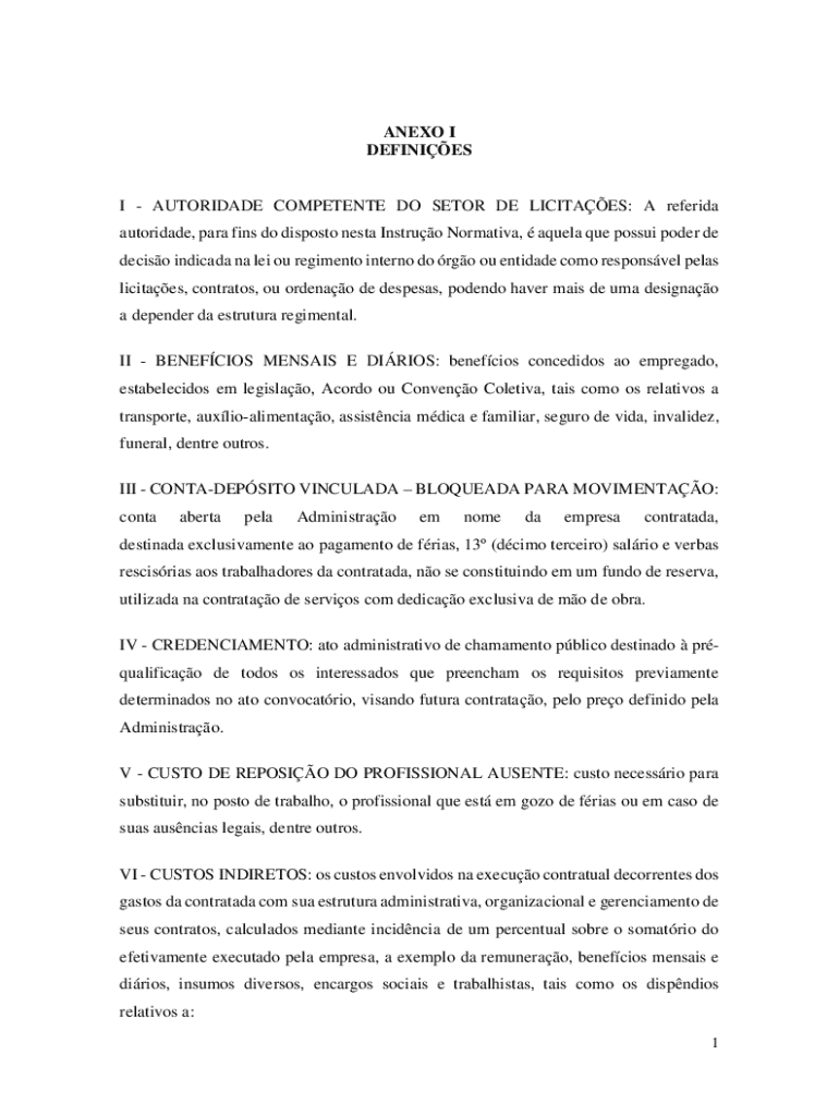 ANEXO I DEFINIESIAUTORIDADE COMPETENTE DO SETOR DE LICITAES: A referida autoridade, para fins do disposto nesta Instruo Normativa,aquela que possui poder de deciso indicada na lei ou regimento interno
