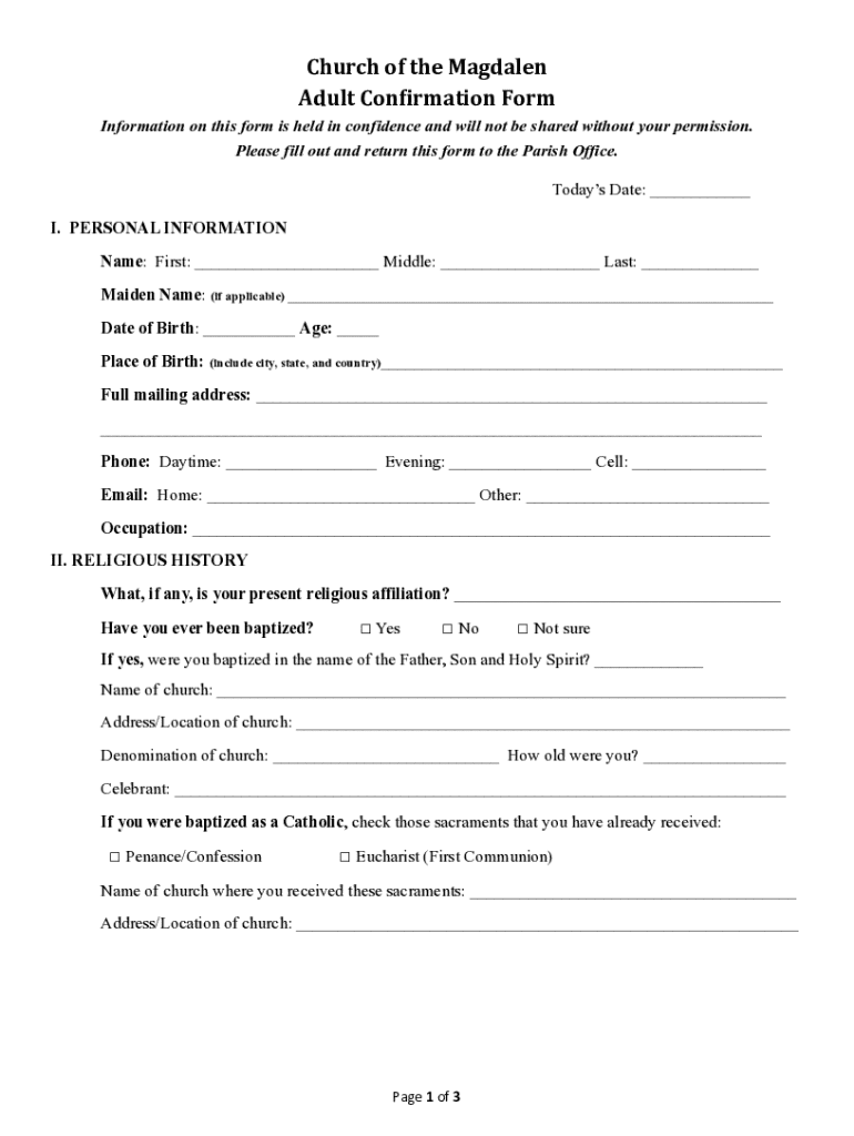 Completing the adult confirmation information form can initially seem daunting, but breaking it down into steps can simplify the process. Before starting to fill out the form, gather necessary documents, including your baptism records and any other certificates that may be required.