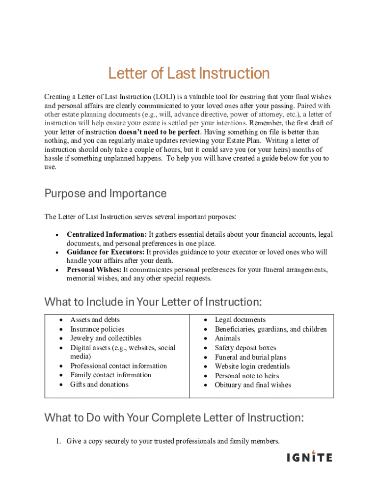 A Comprehensive Guide to the Letter of Last Instruction Form