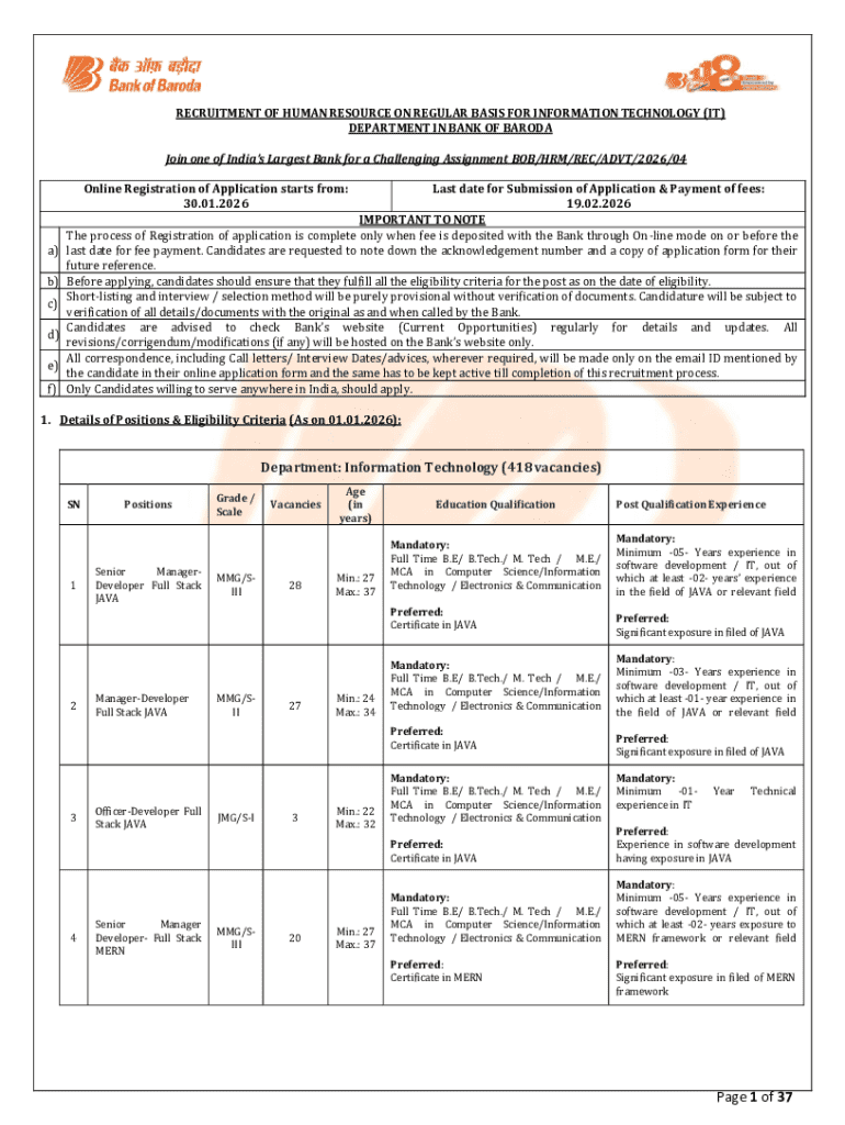 Get the free Bank of Baroda Technical Recruitment 2026. Bank of Baroda Technical Recruitment 2026...