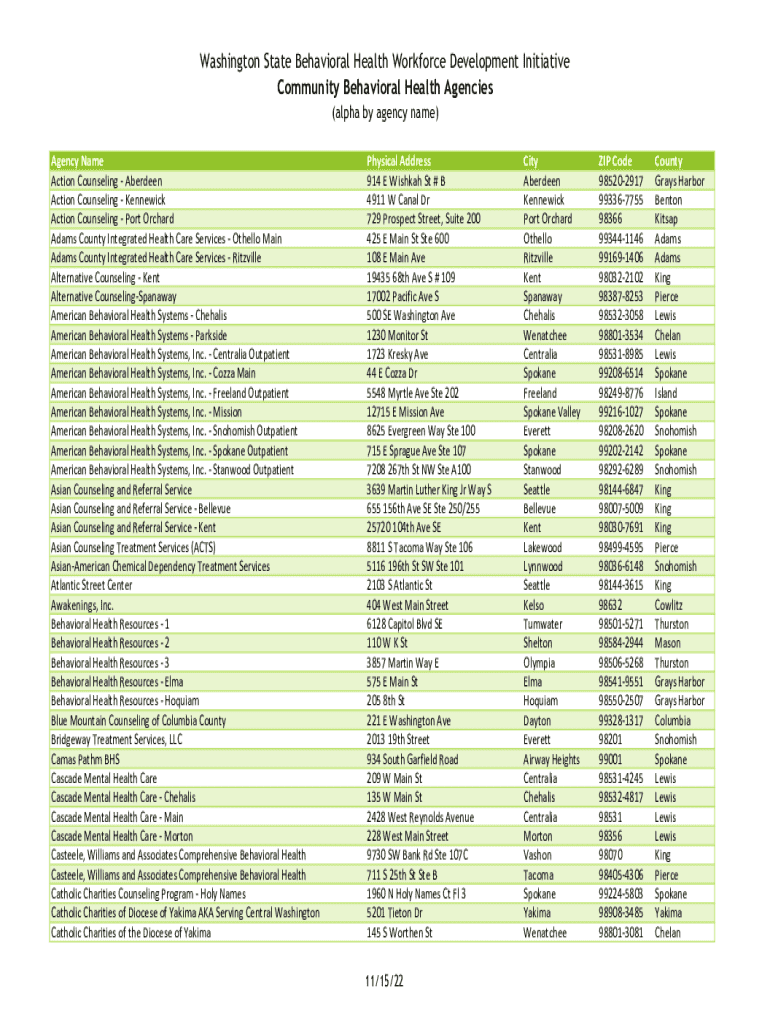 Access to behavioral health services in Washington State is critical for individuals in need. A wealth of resources is available to support individuals seeking help, which include a directory of behavioral health agencies that offer various services.
