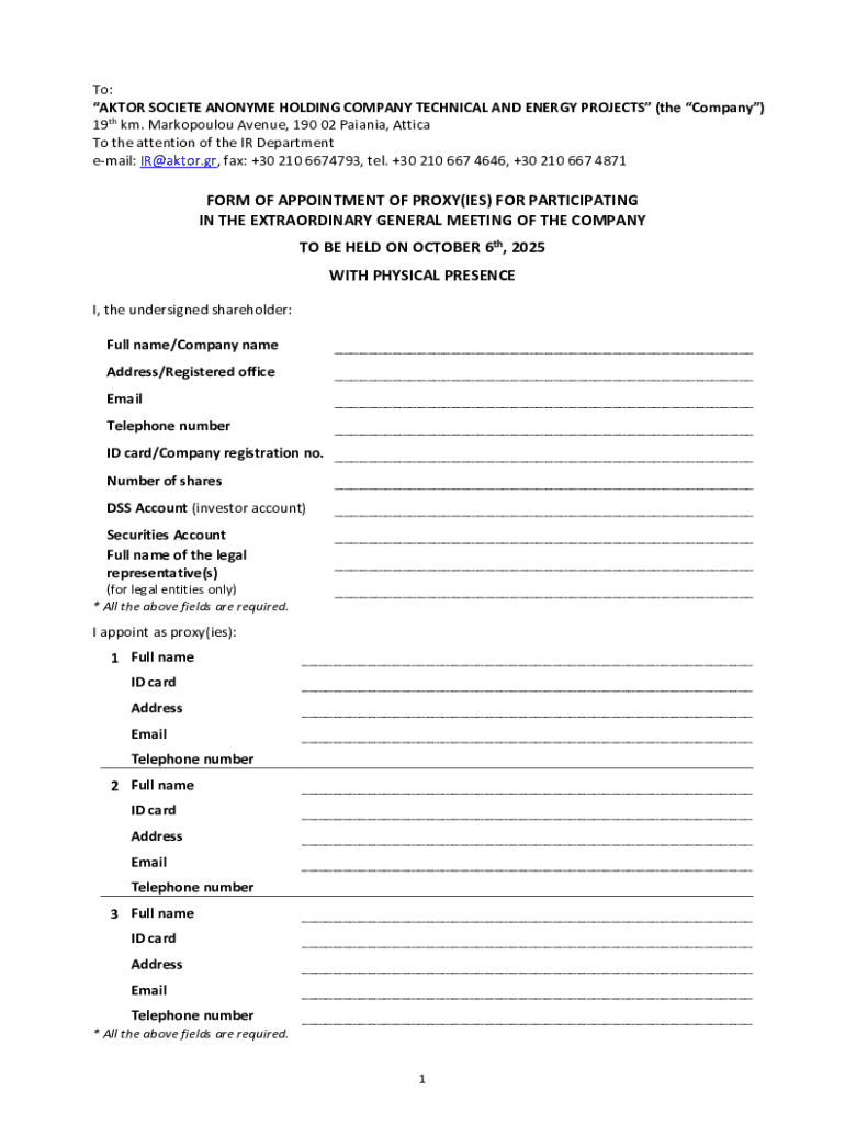 Get the free FORM OF APPOINTMENT OF PROXY(IES) FOR PARTICIPATING IN ...