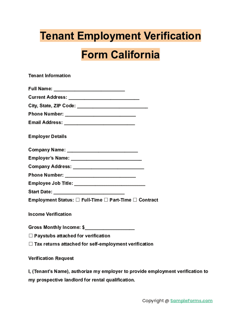 Get the free Tenant Employment Verification Form California