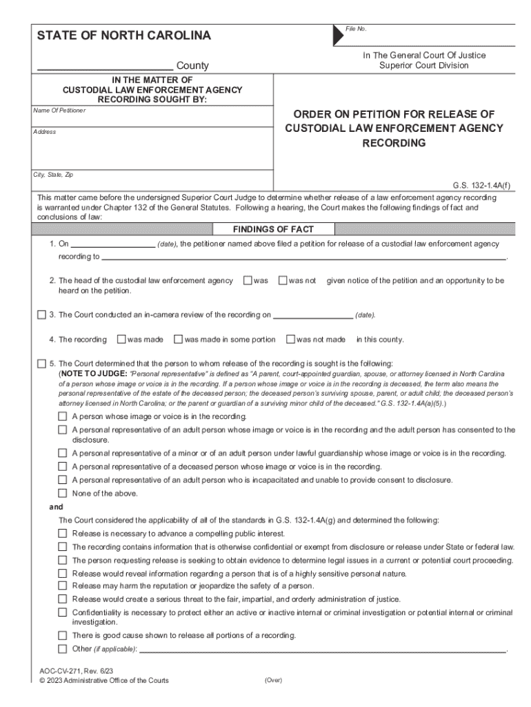 Get the free Order On Petition For Release Of Custodial Law Enforcement ...