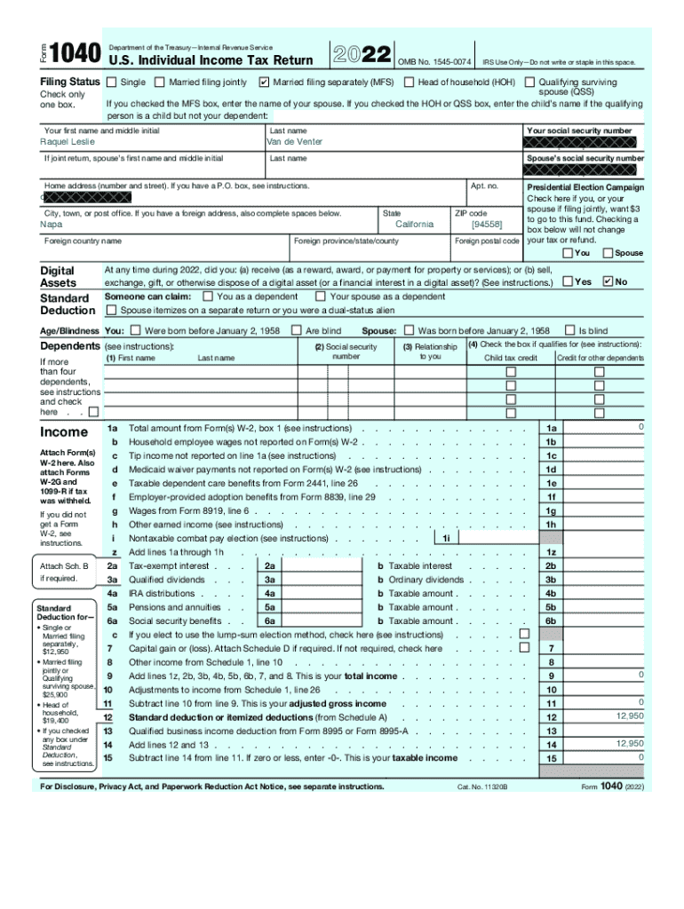 How to fill out 2022 form 1040 file