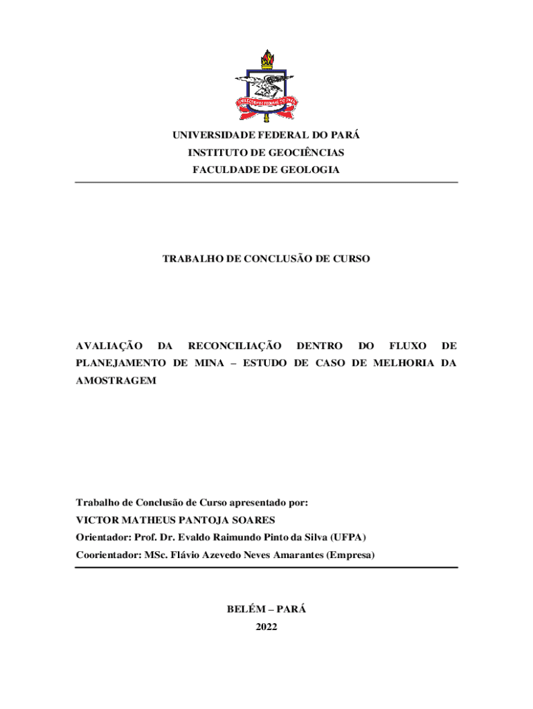 UNIVERSIDADE FEDERAL DO PAR INSTITUTO DE GEOCINCIAS FACULDADE DE GEOLOGIATRABALHO DE CONCLUSO DE CURSOAVALIAODARECONCILIAODENTRODOFLUXODEPLANEJAMENTO DE MINAESTUDO DE CASO DE MELHORIA DA AMOSTRAGEMTrabalho
