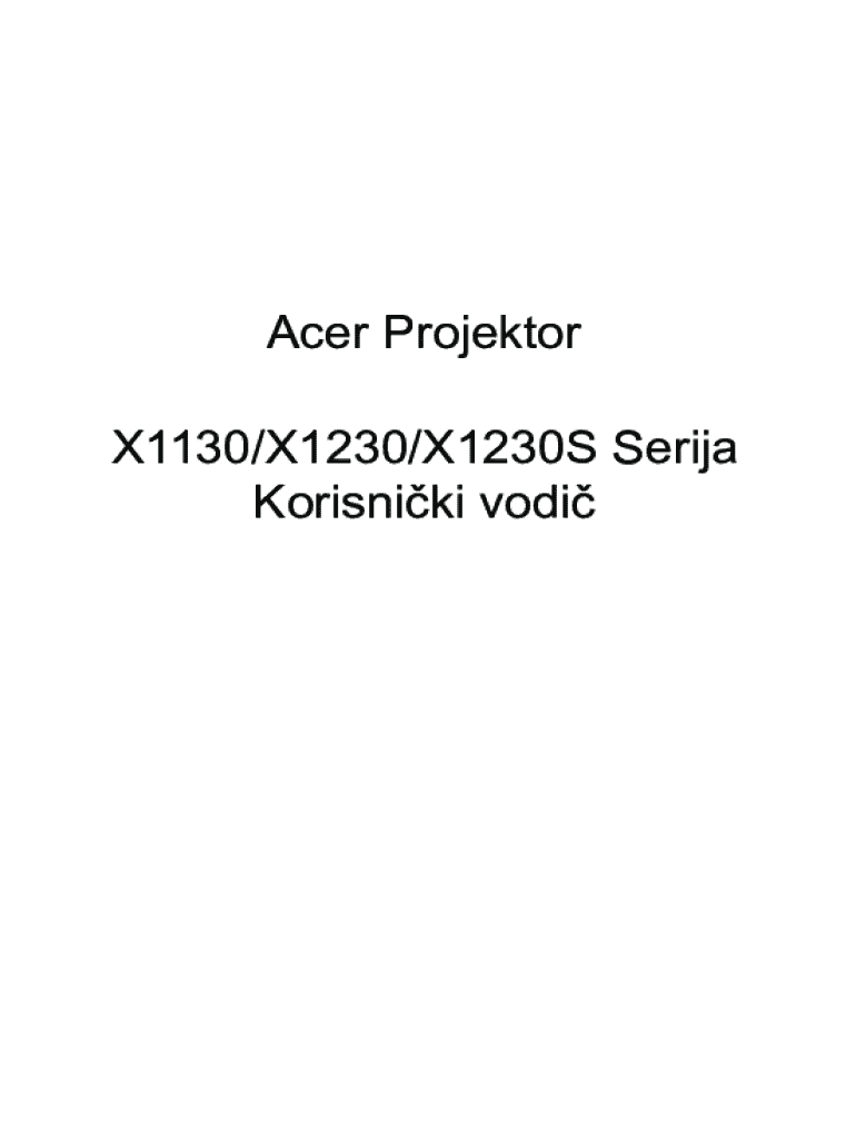 Acer Projektor X1130/X1230/X1230S Serija Korisniki vodiCopyright2009. Acer Incorporated. Sva prava su zadrana. Acer projektor serije X1130/X1230/X1230S, Korisniki prirunik Izvorno izdanje: 1/2009Podaci