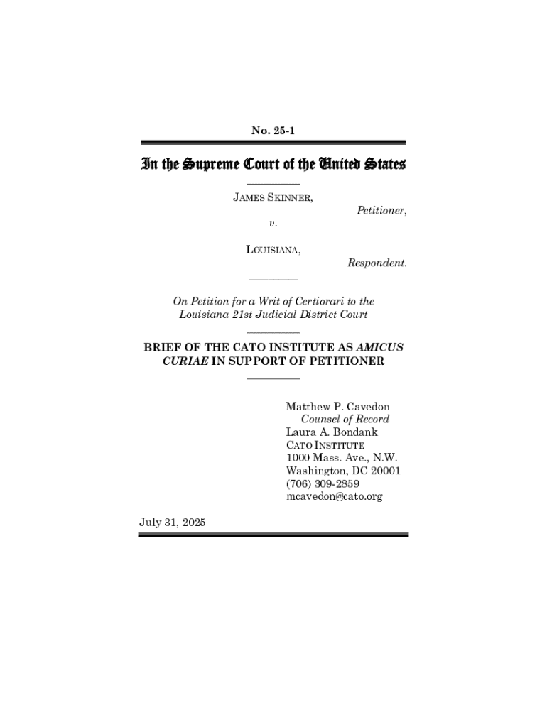 No. 251In the Supreme Court of the United States ___ JAMES SKINNER, Petitioner,v. LOUISIANA,Respondent. ___On Petition for a Writ of Certiorari to the Louisiana 21st Judicial District Court ___ BRIEF