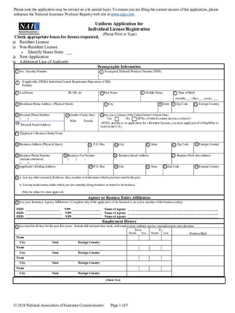To access the Uniform Application for Individual Insurance License/Registration, individuals should visit the National Insurance Producer Registry website, where they can find the most current version of the form. The application is available in PDF format, which allows users to fill it out digitally for easy submission. Ensuring that you have the latest version of the form is crucial for complying with state regulations.