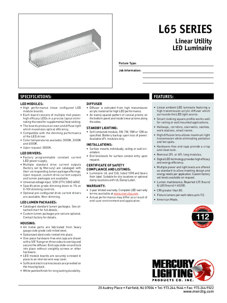 Utilizing pdfFiller for Your L65 Series LED Luminaire Specifications