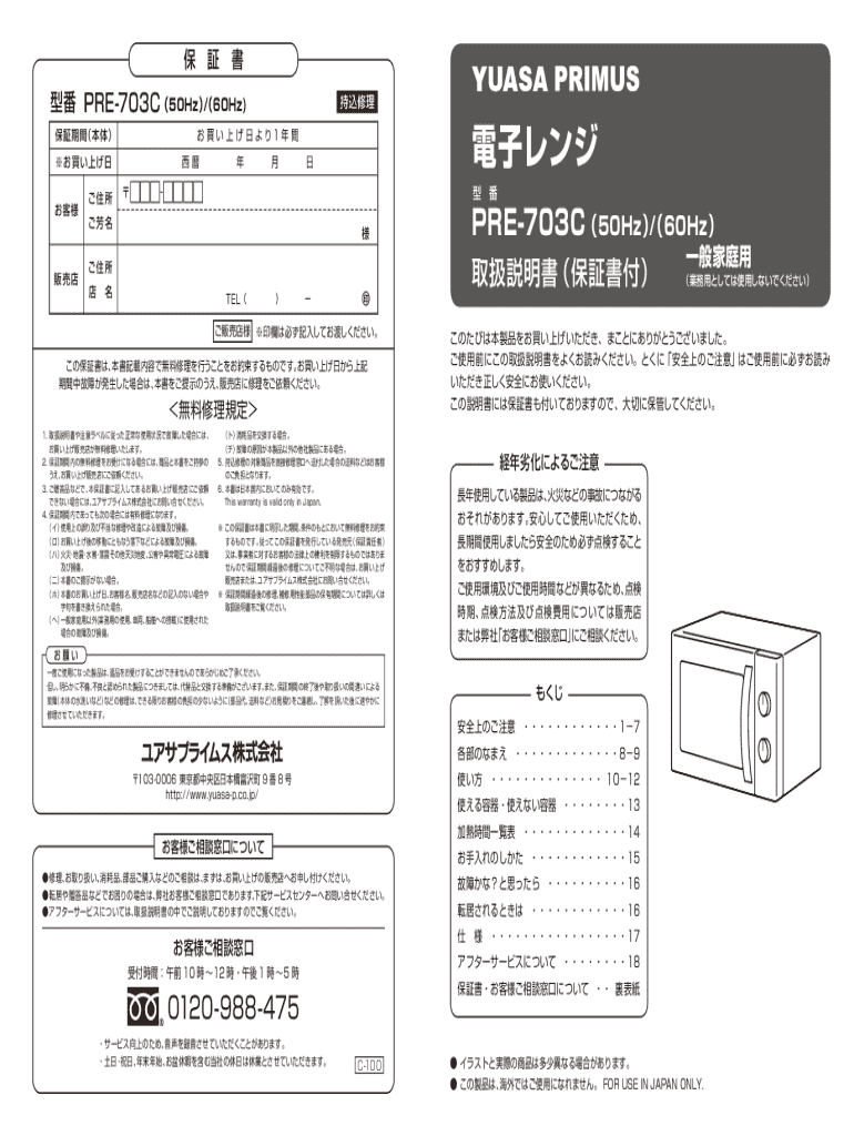 Any consumer in Japan who has purchased a microwave oven can use the Microwave Oven Warranty Certificate to document their warranty rights.