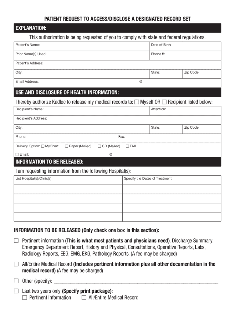 Get the free Patient Request to Access/Disclose a Designated Record Set