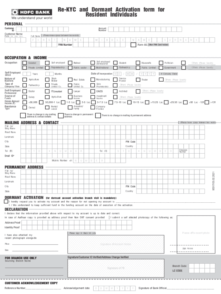 Get the free Re-KYC and Dormant Activation Form for Resident Individuals